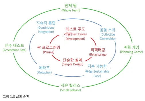이는 XP의 실천 방법을 설명하는 론 제프리즈의 그림으로, 삶의 순환이라는 애칭으로 불리곤 한다.