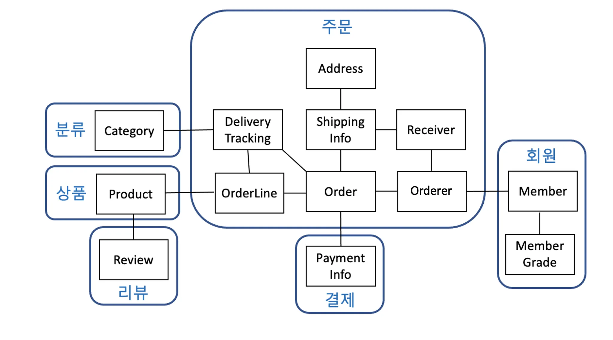 : 주문이라는 도메인 개념은 ‘주문’, ‘배송지 정보’, ‘주문자’, ‘주문 목록’, ‘총 결제 금액’의 하위 모델로 구성되며 이 하위 개념을 표현한 모델을 하나로 묶어서 ‘주문’이라는 상위 개념으로 표현할 수 있다.