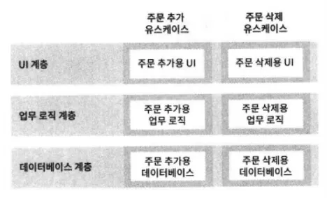: 유스케이스와 계층의 결합이 분리되면 배포 측면에서도 고도의 유연성이 생긴다. 즉 새로운 유스케이스를 추가하는 일은 서비스 몇 개를 추가하는 정도로 단순한 일이 된다.