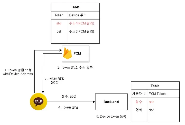 FCM은 Messaging Group의 테이블로부터, 모든 기기들의 token을 얻습니다.