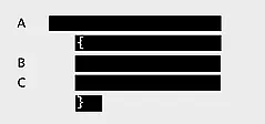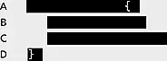 이 예제에서는 명령문 A가 제어 구조를 시작하고 명령문 D가 제어 구조를 끝낸다. 두 명령문 사이에 있는 B, C 명령문이 코드가 폐쇄되어 있음을 보여준다.