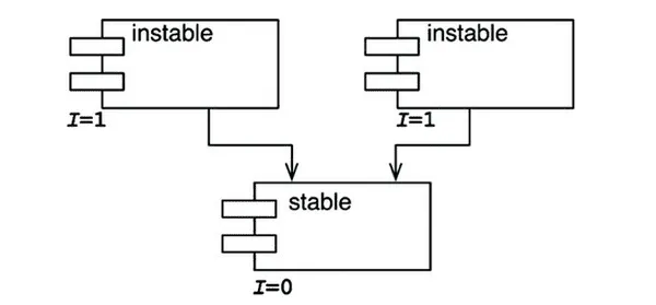 : I = Fan-out / (Fan-in + Fan-out)으로 나타내며 [0, 1]의 값을 가진다. I = 0이면 최고로 안정된 컴포넌트이며 I = 1이면 최고로 불안정한 컴포넌트란 뜻이다.