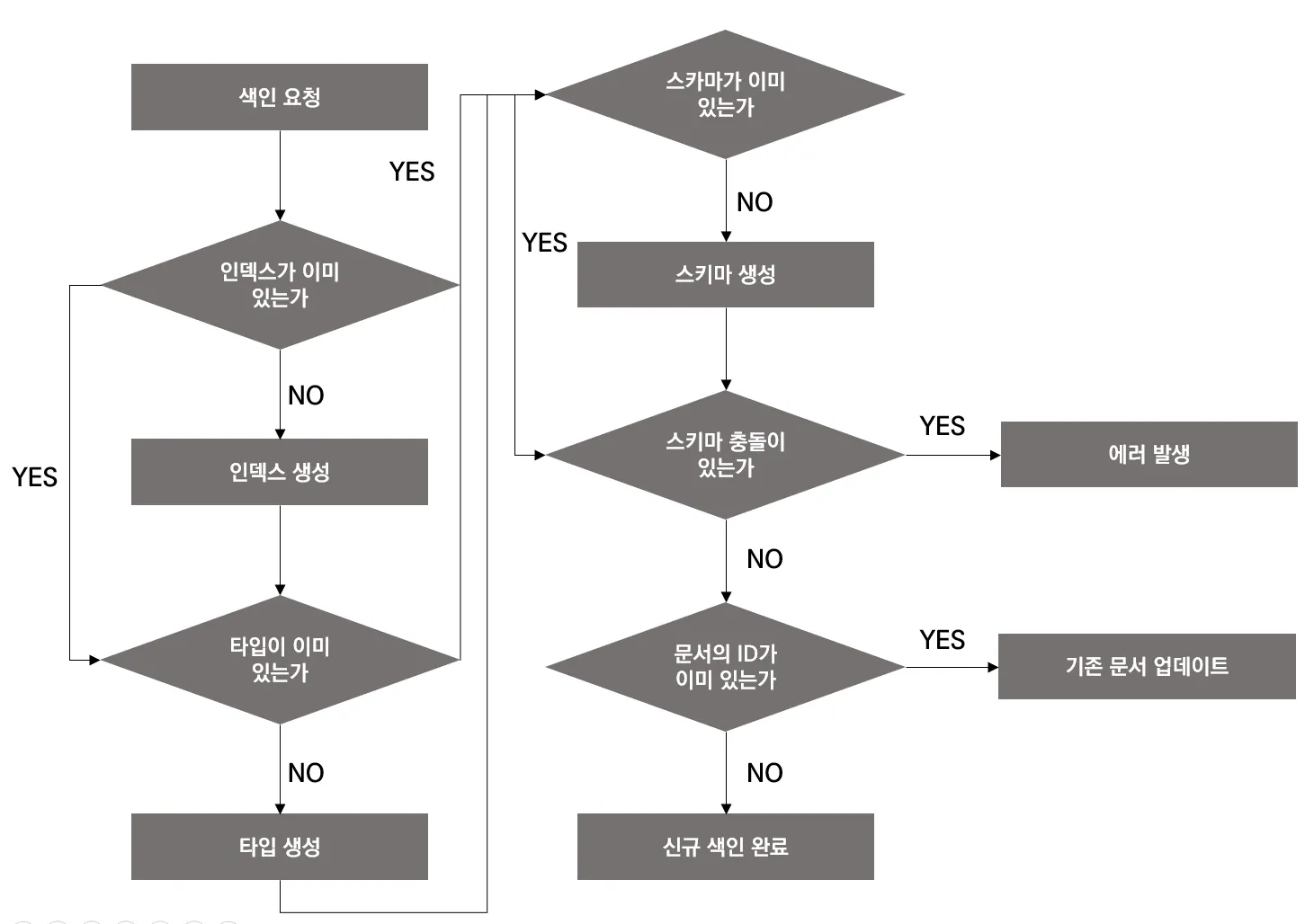 문서를 색인하기 위해 인덱스, 타입, 스키마 등을 미리 정의해둘 필요는 없다.
